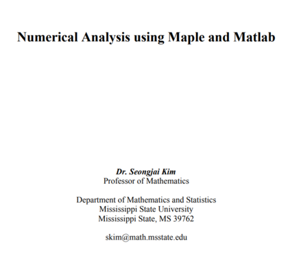 640页《利用Maple和Matlab进行数值分析》,密西西比大学Seongjai Kim教授最新讲义