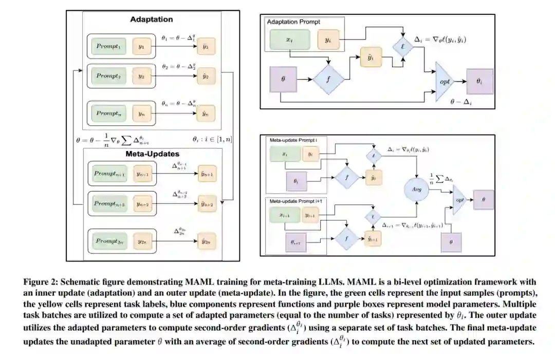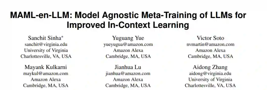 将大型语言模型(LLMs)适应未见任务,并利用上下文训练样本而无需微调,仍然是一个重要的研究问题。为了学习能够很好地适应未见任务的鲁棒LLM,已经提出了多种元训练方法,例如MetaICL和MetaICT,它们涉及在各种不同任务上对预训练的LLMs进行元训练。这些元训练方法本质上执行了上下文多任务微调,并在不相交的测试任务集上进行评估。尽管它们取得了令人印象深刻的性能,但其目标从来不是计算出真正通用的一组参数。在本文中,我们提出了一种新的LLM元训练方法——MAML-en-LLM,它能够学习真正可泛化的参数,不仅在不相交的任务上表现出色,还能适应未见任务。我们观察到在未见领域上性能平均提高了2%,而在适应性能上则大幅提高了4%。此外,我们证明了MAML-en-LLM在训练数据量有限的情况下,在已见和未见领域上均优于基线方法,平均提升了2%。最后,我们讨论了任务类型、优化器和任务复杂性的影响,这是元训练文献中几乎未被探索的领域。在7种任务设置和两种数据设置下进行的详尽实验表明,使用MAML-en-LLM训练的模型在性能上优于现有的元训练方法。
