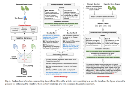 图4. 构建SmartBook的后端工作流程。给定对应特定时间线的文章,该图展示了获取章节、其章节标题及相应章节内容的过程。