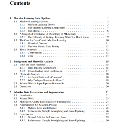 作为这篇论文的一部分,我们探讨了现代机器学习技术栈中新功能或修订功能的几个方向,重点关注整个技术栈中数据的处理。研究数据很重要,因为在三个问题领域中,数据是最具动态性的 — 数据总是可以进一步优化以涵盖更多样本、更多特征或某些类型的行为,而模型(和计算)在处理某种类型的数据时必然是固定的。此外,对数据的优化可能导致应用程序的显著增益,从而刺激数据为中心的AI研究[3]。然而,这并非轻而易举,改变数据容易说难做。由于缺乏理论理解,对于任何新类型的机器学习任务,从业者可能必须测试哪种数据组合效果最好。如果没有适当的数据抽象,任务中的单一变化可能导致从业者必须手动评估和调整应用程序数据的特征。调整数据的方面不仅是单调乏味的,而且根据数据评估模型以及系统性能的行为需要机器学习和系统的专业知识,而这些专业知识通常是由不同群体的人拥有的。如果机器学习系统的目标是支持从业者解决重复问题,那么可以合理地期望机器学习系统能够使数据的快速配置和原型制作成为可能。简而言之,数据管道应该是机器学习系统栈中的一等公民 - 它们不应该是作为附加工具支持模型和计算的事后考虑。本章其余部分的组织结构如下。首先,我们概述机器学习系统是如何构建和评估的(§1.1)。然后,我们概述机器学习中的工作负载是如何发生根本性变化的,这使得社区分裂成两个部分(§1.2),并激励对机器学习系统进行根本不同的处理。然后我们转向论文的动机,重新审视数据在当前机器学习环境中的重要性(§1.3)。最后,我们介绍论文陈述并概述本文的章节(§1.4)。熟悉当前机器学习和机器学习系统状态的读者可以跳过第1.1节和第1.2节的“教科书材料”,并直接前往第1.3节。