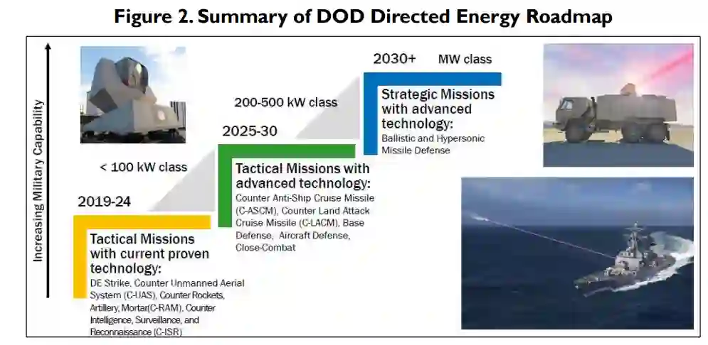 定向能(DE)武器使用集中的电磁能,而不是动能,来打击敌军。尽管美国自20世纪60年代以来一直在研究定向能,但一些专家观察到,国防部(DOD)已经在定向能项目上投资了数十亿美元,但这些项目未能达到成熟,最终被取消。然而,近年来,国防部在定向能武器开发方面取得了进展,于2014年在美国海军 "庞塞 "号上部署了美国第一种实用的定向能武器。自那时起,DE武器的开发一直在继续,国防部发布了一份定向能路线图,以协调该部门的努力。国防部还提出了一个高能激光缩放计划,该计划旨在加强定向能武器的国防工业基础,并提高激光束的质量和效率。