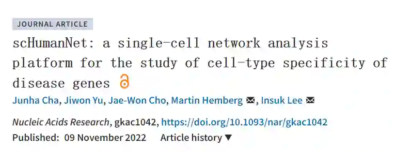 总之,作者提出的单细胞网络生物学计算平台scHumanNet,能够解决疾病相关基因功能的细胞异质性。scHumanNet可以将疾病基因集的功能作用反卷积到细胞类型中,并通过CGN的拓扑分析识别疾病相关的细胞类型。这些结果表明,scHumanNet将促进人类疾病基因细胞类型特异性的研究,从而推进精准医疗的发展。 参考资料 Junha Cha, Jiwon Yu, Jae-Won Cho, Martin Hemberg, Insuk Lee, scHumanNet: a single-cell network analysis platform for the study of cell-type specificity of disease genes, Nucleic Acids Research, 2022;, gkac1042. https://doi.org/10.1093/nar/gkac1042.