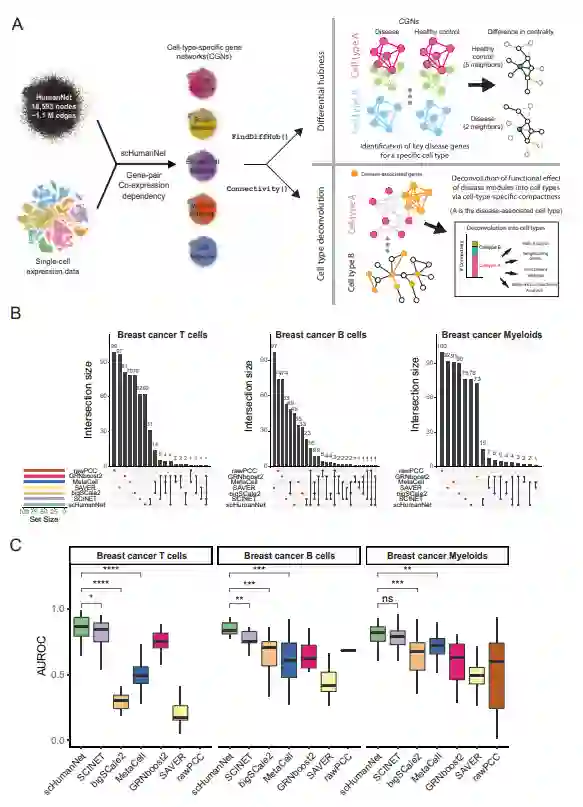 图4 使用scHumanNet将乳腺癌特征反卷积到细胞类型