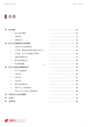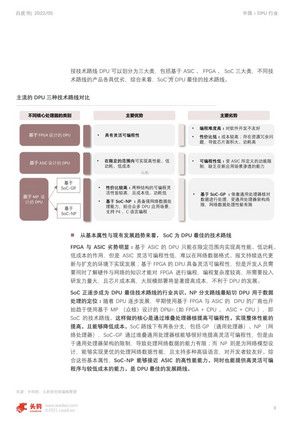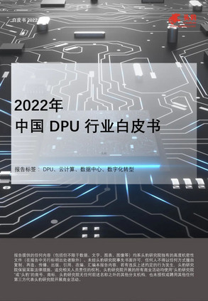 头豹研究院谨此发布《2022年中国DPU行业白皮书》。本报告旨在分析DPU发展现状、产品特点、技术动向及发展趋势,并识别中国芯片厂商与海外芯片厂商的差异,从而判断中国DPU行业的现状与发展机遇。基于全文的论述,本报告在最后分享了作者对于行业未来发展理解与思考,旨在倡导行业内外各方加强合作,从而推动中国DPU行业与中国芯片行业整体发展。