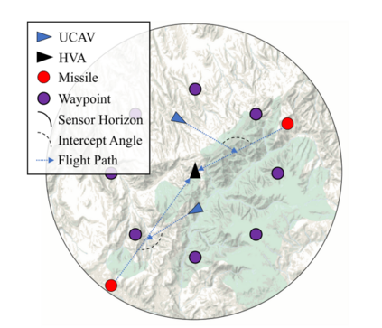 本文探讨了机器学习在自主无人战斗飞行器(AUCAV)控制中的应用。特别是,本研究将深度强化学习方法应用于防御性空战场景,在该场景中,AUCAV 机群保护军事高价值资产 (HVA),该资产要么是静止的(如在空军基地防御场景中),要么是快速移动的(如在涉及护送货运飞机或指挥控制飞机的场景中)。通过采用马尔可夫决策过程、近似动态规划算法和用于价值函数近似的深度神经网络,一系列空战管理场景、原始模拟环境和一系列设计的计算实验为高质量决策策略的近似提供了支持。三项连续的研究探索了新型模型和相应的方法论,以提高数学模型的准确性,提高计算效率,或更准确地评估复杂问题的解决方案质量,在这些问题中,最优解决方案的计算难以实现。对政策有效性和特定政策行为的深入分析为战术、技术和程序的完善提供了信息,并使能力评估更加准确和量化,从而为所有相关系统的需求开发和采购计划提供支持。
