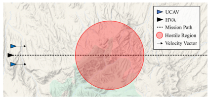 图 1. 假想的 GABMP 场景,描绘了穿越敌对领土的固定 HVA 任务路径