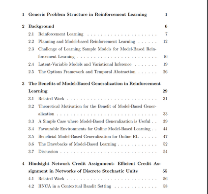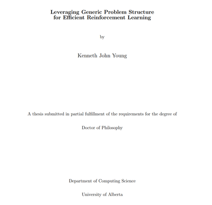 在本论文中,我研究了如何利用通用问题结构来提高强化学习算法的效率。通用问题结构是指存在于广泛问题中的基本结构(例如,当前采取的行动不会影响过去),而不是特定问题的特定结构(例如,关于某个游戏中哪些动作更优的启发式或定理)。我的研究分为三个主要贡献。