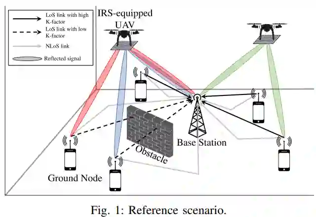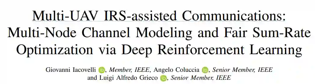 无人飞行器(UAV)与智能反光面(IRS)相结合,利用无人飞行器的三维移动性和 IRS 的智能无线电功能,是提高无线通信信道容量的尖端技术。这项研究设想了这样一种场景:一群配备 IRS 的无人机通过 OFDMA 同时向一个基站(BS)传输信号,为多个物联网(IoT)地面节点(GN)提供服务。组成 IRS 的无源元件数量庞大,给任务设计带来了极大的复杂性。因此,每个 IRS 都被划分为可同时服务于不同节点的补丁。考虑到一般里氏衰落,推导出了 IRS 辅助无人机辅助网络的综合信道模型。然后,设想了一个多目标混合整数非线性编程问题,通过联合优化轨迹和相移矩阵,使全球导航网的总速率最大化,同时使用户数据速率差最小化。用调度(即补丁-GN 分配)来重新表述这个非凸问题,在解决上具有挑战性。因此,该问题被重新编排为马尔可夫决策过程,并通过深度强化学习获得了准最优解。我们进行了广泛的仿真分析,以验证所提模型的结果和准确性。