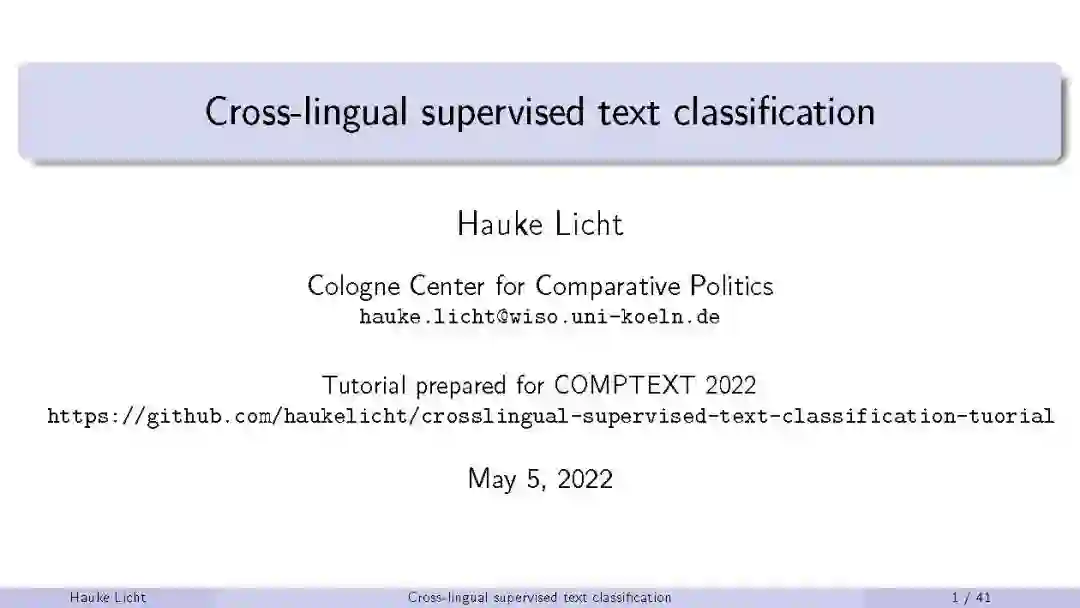 本教程介绍常用的处理多语言语料库的方法,并讨论了它们各自的优缺点。然后,研讨会通过一个应用的例子,包括免费机器翻译,多语言句子和单词嵌入,以及时间允许的多语言Transformer。