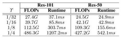 表1. 在神经网络中,特征图分辨率对于浮点运算量(FLOPs)和运行时间(Runtime)的影响。ϒ表示所维护的特征图分辨率和输入图片分辨率的比率。
