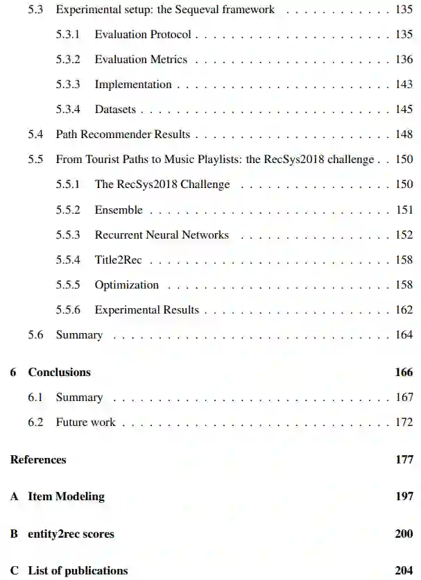 第五章介绍了路径推荐器[30]、评估框架Sequeval和签到数据集的收集[31, 32],以及路径推荐器在音乐领域的扩展[33]。