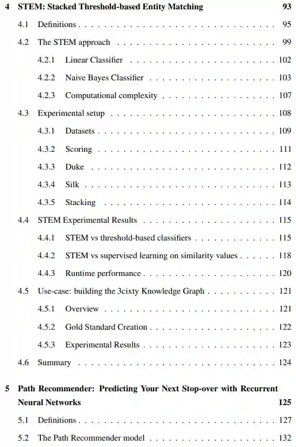 第四章描述了STEM(基于叠加阈值的实体匹配)方法[28],其实验验证和3cixty研究项目的使用案例[29]。