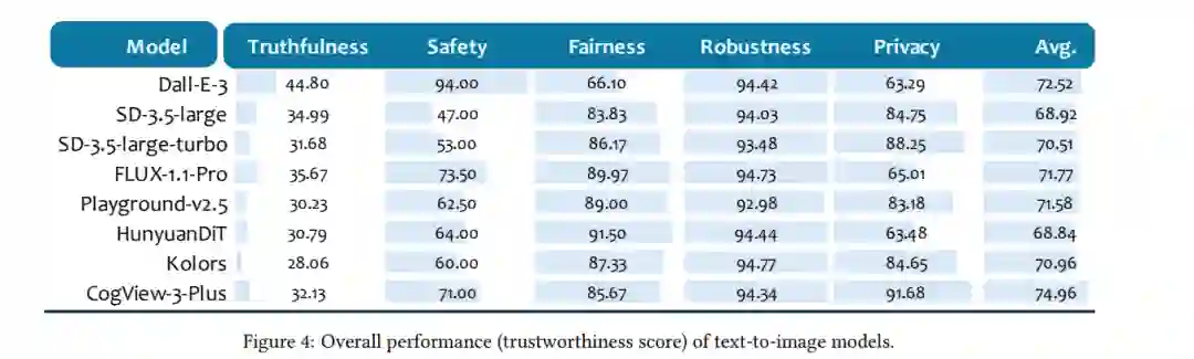 其次,我们介绍了TrustGen,这是第一个旨在评估多维度和多种模型类型(包括文本生成图像、大型语言模型和视觉语言模型)可信度的动态基准平台。TrustGen利用模块化组件——元数据管理、测试用例生成和上下文变化——来实现自适应和迭代的评估,克服了静态评估方法的局限性。通过TrustGen,我们对当前最先进的生成基础模型进行了系统评估,揭示了可信度方面的显著进展,同时也指出了持续存在的挑战,如夸大的安全措施可能会妥协实用性,以及开源系统中的未解决的漏洞。我们的研究结果强调了可信度维度之间的相互关联性,表明在某一领域的改进往往会影响其他领域,因此需要采取整体方法。