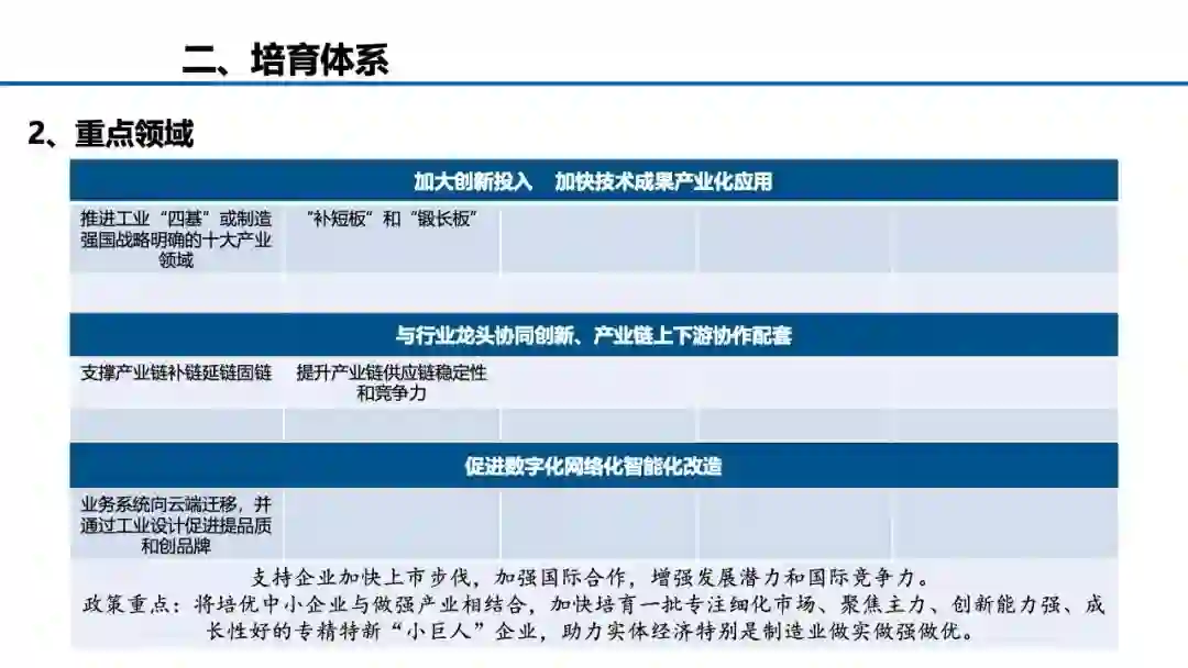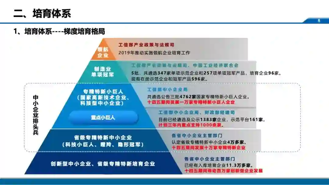 今年5月,国家将启动第四批专精特新“小巨人”企业培育认定工作。同时,围绕产业链促进大中小企业融通发展,形成协同、高效、融合、顺畅的大中小企业融通创新生态,激发涌现一批协同配套能力突出的“专精特新”中小企业。