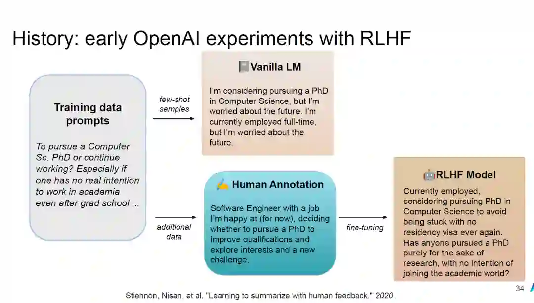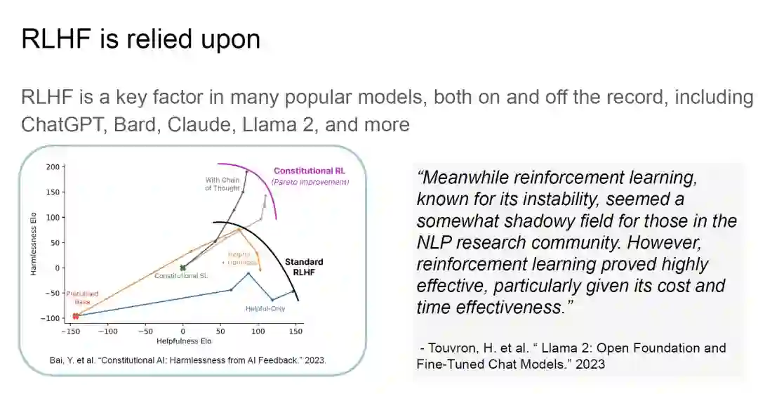 技术概述将RLHF过程分解为三个主要阶段:为基本策略进行语言建模,对人类偏好进行建模,以及使用RL进行优化。本教程的这一部分将是技术性的,并将描述潜在的研究问题、陷阱以及成功项目的技巧。