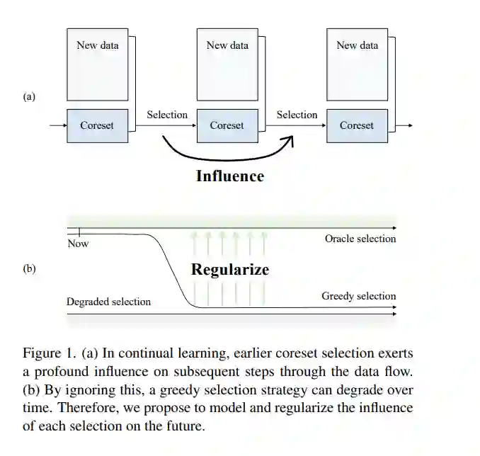 持续学习旨在在非平稳数据流上进行学习,而不会灾难性地忘记之前的知识。流行的基于重放的方法通过在一个保存已见数据的小缓冲区上排练来解决这一挑战,为此需要一个精细的样本选择策略。然而,现有的选择方案通常只寻求当前选择的效用最大化,而忽略了连续几轮选择之间的干扰。受此启发,在一个建立在影响函数上的框架内,剖析了顺序选择步骤的相互作用。本文设法确定了一类新的二阶影响,它将逐渐放大重播缓冲区中的偶然偏差,并损害选择过程。为了正则化二阶效应,提出了一个新的选择目标,它也与两个广泛采用的准则有明确的联系。此外,还提出了一种高效的实现方法来优化所提出的准则。在多个持续学习基准上的实验表明,所提出方法比最先进的方法具有优势。代码可以在https://github.com/ feifeiobama/InfluenceCL找到。