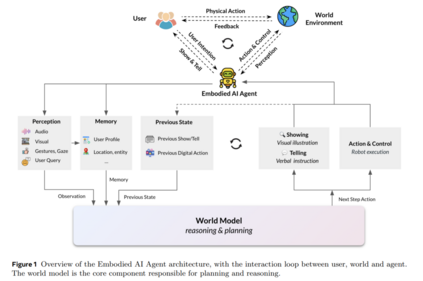 本文介绍了我们在具身人工智能(Embodied AI)智能体方面的研究,这些智能体以视觉、虚拟或物理形式体现,从而能够更自然地与用户及其环境交互。这类智能体包括虚拟化身、可穿戴设备以及机器人,旨在具备感知、学习与行动的能力,使其在学习与交互方式上更接近人类,相比于非具身智能体更具自然性与适应性。 我们提出,世界模型(World Models)的构建是具身智能体实现推理与规划的核心,能够帮助智能体理解并预测其环境、把握用户意图与社会语境,从而提升其自主完成复杂任务的能力。世界建模涵盖了多模态感知的整合、基于推理的规划与控制、以及记忆机制,共同构建对物理世界的全面理解。除物理世界外,我们还提出应学习用户的心理世界模型(Mental World Model),以实现更优的人机协作。 虚拟具身智能体正在变革治疗与娱乐等领域,通过提供具情感理解能力的交互体验。可穿戴智能体(如集成于 AI 眼镜中)有望实现实时辅助与个性化体验,而机器人智能体则可应对劳动力短缺,在非结构化环境中执行任务。本文不仅探讨了具身智能体面临的技术挑战及我们的解决策略,还强调了在这些智能体逐步融入日常生活过程中对伦理问题的重视,尤其是关于隐私保护与拟人化的议题。 未来的研究方向包括:具身智能体的学习能力、多智能体协作与人机互动的提升、社会智能的增强,以及在设计过程中确保伦理实践。通过应对上述挑战,具身智能体有望革新人机交互方式,使其更直观、更能响应人类需求。本文综述了我们在具身智能体研究方面的现状与未来方向,旨在推动其潜力的全面释放,为人类生活带来深远影响。