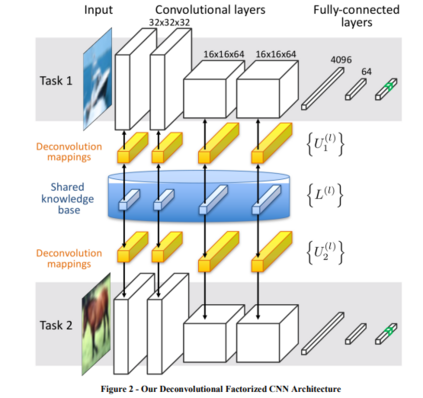 我们的主要贡献是反卷积因子卷积神经网络(DFCNN)。DF-CNN框架调整了标准卷积神经网络(CNN)框架,以实现任务之间的转移。它在每个CNN层维护一个共享知识库,并通过这个共享知识促进不同任务的CNN之间的转移。每个具体任务的CNN模型的各个过滤层都是由这个共享知识库重建的,随着网络在多个任务中的训练,这个知识库会随着时间的推移而调整。DF-CNN代表了ELLA终身学习框架对深度网络的概括。