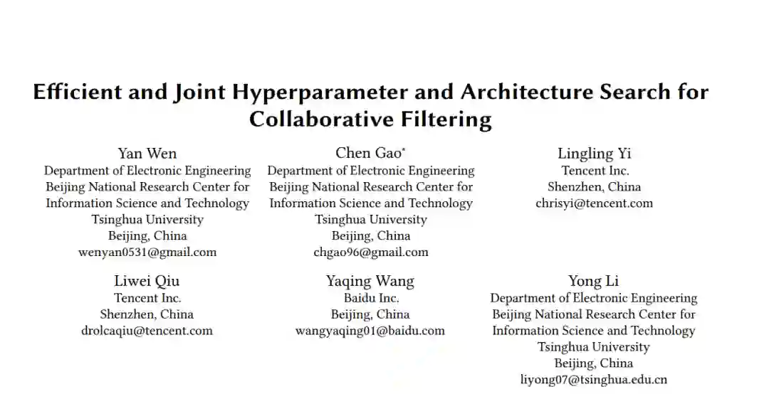 近期,自动化机器学习(AutoML)技术被引入,用以根据数据特定方式设计协同过滤(CF)模型。然而,现有的工作或是搜索架构,或是搜索超参数,而忽略了它们之间的内在关系,应该一同考虑。这激发了我们考虑一种结合超参数和架构搜索的方法来设计CF模型。但由于搜索空间巨大和评估成本高昂,这并不容易。为解决这些挑战,我们通过对单个超参数的全面了解,筛选出有用的超参数选择来减少搜索空间。接下来,我们提出了一个两阶段搜索算法,从减少的空间中找到合适的配置。在第一阶段,我们利用从子样本数据集中获取的知识来减少评估成本;在第二阶段,我们高效地在整个数据集上对顶级候选模型进行微调。在真实世界数据集上的大量实验表明,与手工设计的和以前搜索的模型相比,我们的模型可以达到更好的性能。此外,消融和案例研究都证明了我们搜索框架的有效性。