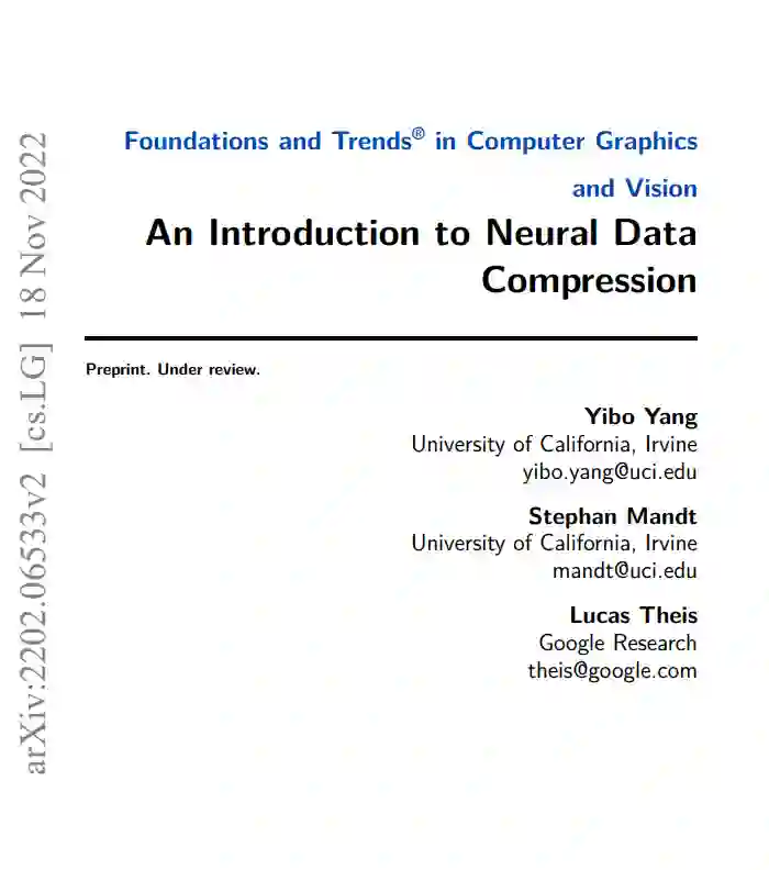 数据压缩的目标是减少表示有用信息所需的比特数。神经压缩,或学习压缩,是神经网络和相关机器学习技术在这项任务中的应用。本文旨在通过回顾神经压缩的先决背景和代表性方法,为对压缩感兴趣的机器学习研究人员提供一个切入点。在当前的深度学习时代[1]-[4]之前,基于学习的数据压缩的基本思想早已以各种形式存在。许多用于神经压缩的工具和技术,特别是图像压缩,也借鉴了计算机视觉中基于学习的方法的丰富历史。事实上,图像处理和恢复中的许多问题都可以看作是有损图像压缩;例如,图像超分辨率可以通过学习固定编码器(图像下采样过程)[5][6]的解码器来解决。事实上,神经网络早在20世纪80年代末和90年代就已经应用于图像压缩[7][8],甚至有一篇早期的综述文章[9]。与早期工作相比,现代方法在规模、神经结构和编码方案方面有显著差异。