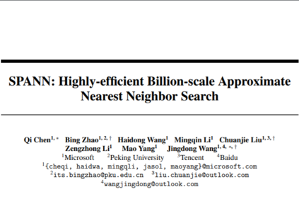 论文摘要:随着数据规模的快速增长,基于内存的向量搜索面临着海量且非常昂贵的内存需求,人们对小内存-大硬盘混合型向量近似最近邻搜索的需求也越来越迫切。因此,研究员们提出了一种非常简单且高效的基于倒排索引思想的内存-硬盘混合型索引和搜索方案 SPANN,有效地解决了倒排索引方法中的三个会导致高延迟或者低召回的难题。实验结果显示,SPANN 在多个上亿量级数据集上都能取得两倍多的加速达到 90% 召回率,其查询延迟能够有效地控制在一毫秒左右。同时, SPANN 的设计能够有效地被扩展到分布式搜索中限制每个查询的资源开销和延迟大小,从而实现高可扩展性。目前 SPANN 已经被部署在了微软必应搜索中支持百亿量级的高性能向量近似最近邻搜索。