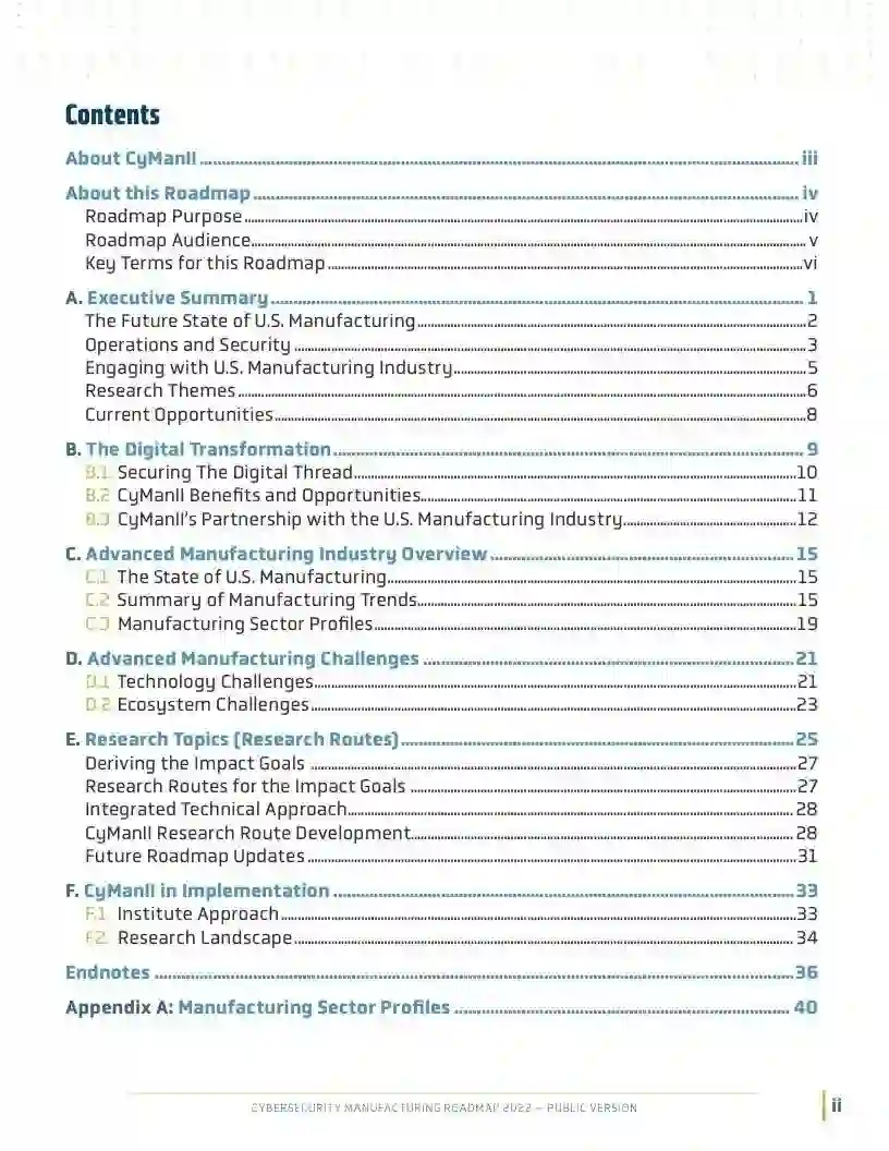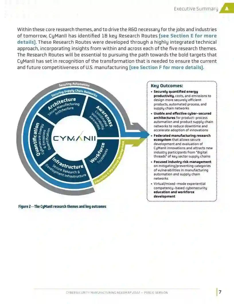 **4. 评析:在未来几十年里,数字化转型仍将作为主流趋势,继续推动美国制造业的创新研究。**网络安全制造创新研究所 (CyManII)此次发布的路线图为美国未来制造业、包括关键基础设施的网络安全部署明确了基本目标与实施路线,凸显了美国为构筑制造业竞争优势,抢占网络安全主导权的重要举措,其后续相关发展值得高度关注。