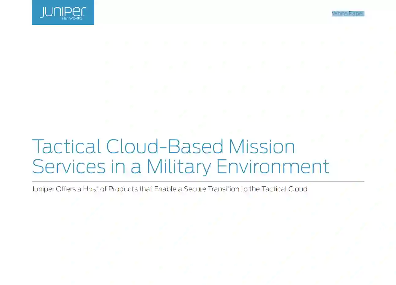 本文阐述了基于战术云的移动任务服务的演变。它指出了追求战术云功能的一些关键驱动因素,并介绍了支持这种演进所需的网络要求。最后,本文阐述了如何利用瞻博网络技术来支持 “移动 ”战术云。