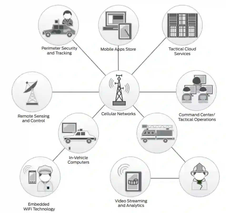 战术环境中的通信因环境和通信平台的不同而有很大差异,可能包括标准的商用波形和专用波形,以实现 IP 无线/有线、卫星、微波和军用射频 (RF) 信号功能。一般来说,战术终端用户通过使用基于 IP 的软件定义无线电(SDR)的移动特设网络(MANET)进行连接。智能手机和平板电脑等数据处理设备与这些无线电相连。