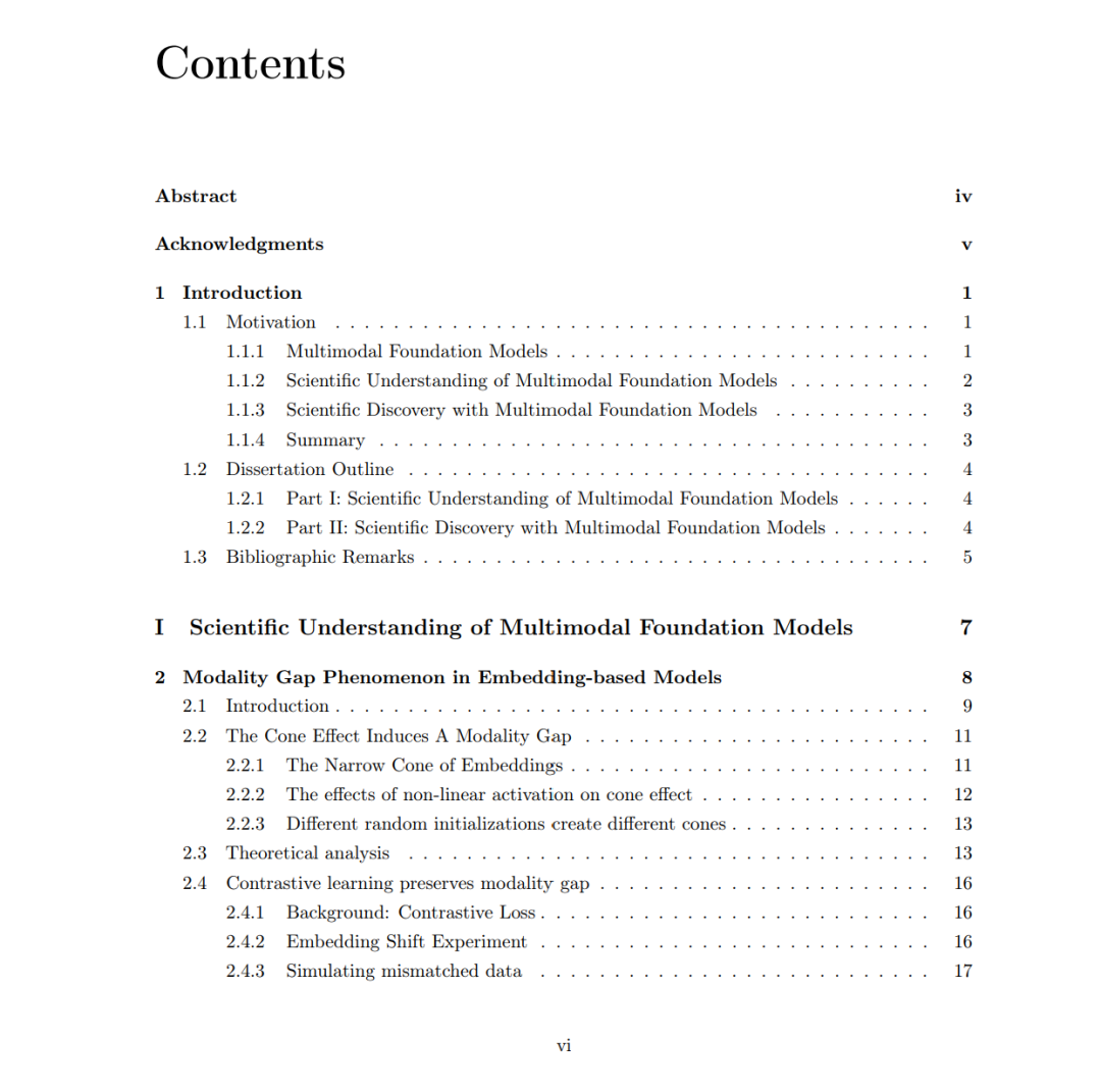 首先,我通过分析多模态基础模型的内部表征行为模式,加深了对其科学机理的理解。针对基于嵌入的多模态对比模型,我揭示并缓解了“模态鸿沟”问题——即视觉与语言表征之间持久存在的几何分离——并展示了消除这一鸿沟如何支持诸如跨模态检索多模态诊断等应用。针对生成式多模态大语言模型,我发现并应对了其在图像分类等核心能力上的意外弱点,并提出了更精确的评估策略。
