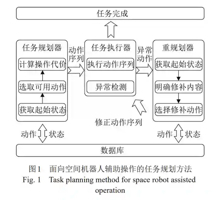 针对空间机器人辅助操作时任务流程复杂、任务约束众多,导致任务规划困难的情况,提出了一种快速前向搜索算法和分层网络算法相结合的任务规划方法。将空间辅助操作任务规划过程分为任务规划和重规划。基于操作代价的快速前向搜索任务规划方法,得到操作代价最小的动作执行序列;基于分层网络的任务自适应重规划 方法 ,根据问题排列移动、抓取、释放的修正补偿优先级对问题修正补偿。针对空间机器人在轨辅助加注任务进行了对比仿真,得到了操作代价最小的动作序列,并采用重规划算法解决了任务执行过程中环境信息变化导致的错误,验证了算法的有效性,为空间辅助操作提供了一种有效的任务规划方法。 关键词: 空间机器人, 任务规划, 重规划, 快速前向搜索,