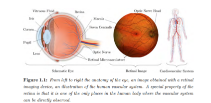 我的数学/医学图像分析博士学位论文是“在SE(2)中使用亚黎曼几何进行视网膜图像分析”。本文描述了视网膜图像的自动和半自动分析算法。这些视网膜图像是通过对眼睛内部成像的非侵入性光学相机获得的。开发自动视网膜图像分析算法的目标有两个: