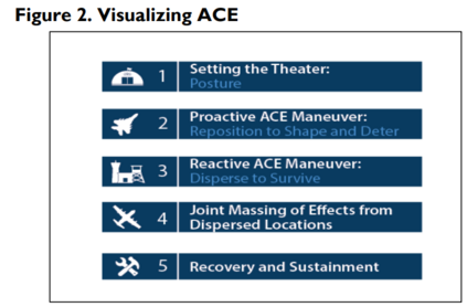 美国空军(USAF)提出了一种称为 "敏捷作战部署"(ACE)的作战概念,为其规划提供信息和指导。根据空军的说法,ACE 是一种 "主动和被动的机动作战方案",使美军能够 "在产生战斗力的同时提高生存能力"。