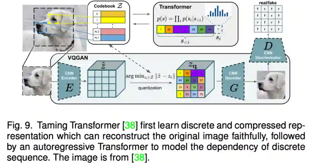 相比于基于 GAN 的方法,自回归模型方法能够更加自然的处理多模态数据,以及利用目前流行的 Transformer 模型。自回归方法一般先学习一个向量量化编码器将图片离散地表示为 token 序列,然后自回归式地建模 token 的分布。由于文本和语音等数据都能表示为 token 并作为自回归建模的条件,因此各种多模态图片合成与编辑任务都能统一到一个框架当中。