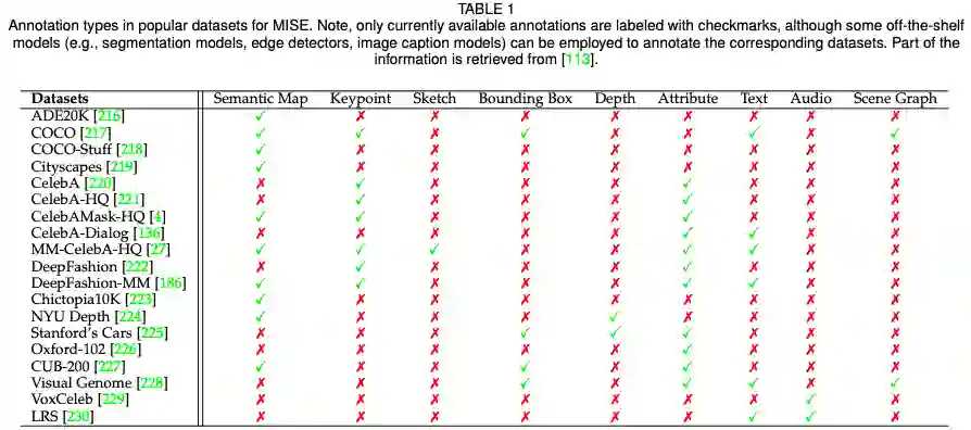 在第四章节,该综述汇集了多模态合成与编辑领域流行的数据集以及相应的模态标注,并且针对各模态典型任务(语义图像合成,文字到图像合成,语音引导图像编辑)对当前方法进行了定量的比较。 在第五章节,该综述对此领域目前的挑战和未来方向进行了探讨和分析,包括大规模的多模态数据集,准确可靠的评估指标,高效的网络架构,以及 3D 感知的发展方向。 在第六和第七章节,该综述分别阐述了此领域潜在的社会影响和总结了文章的内容与贡献。