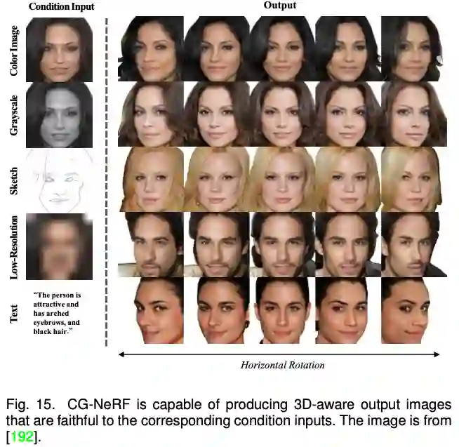 以上方法主要聚焦于 2D 图像的多模态合成与编辑。近期随着神经辐射场(NeRF)的迅速发展,3D 感知的多模态合成与编辑也吸引了越来越多的关注。由于需要考虑多视角一致性,3D 感知的多模态合成与编辑是更具挑战性的任务。本文针对单场景优化 NeRF,生成式 NeRF 和 NeRF 反演的三种方法对现有工作进行了分类与总结。 随后,该综述对以上四种模型方法的进行了比较和讨论。总体而言,相比于 GAN,目前最先进的模型更加偏爱自回归模型和扩散模型。而 NeRF 在多模态合成与编辑任务的应用为这个领域的研究打开了一扇新的窗户。