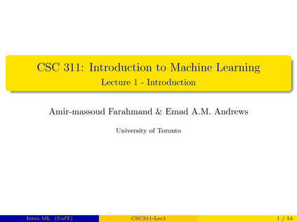 【导读】2020新年伊始,多伦多大学Amir-massoud Farahmand和Emad A. M. Andrews博士开设了机器学习导论课程,介绍了机器学习的主要概念和思想,并概述了许多常用的机器学习算法。它还可以作为更高级的ML课程的基础。