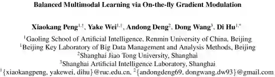 论文链接: https://www.zhuanzhi.ai/paper/113f24612d0cab5c4df98534bc719ebc 代码链接:https://github.com/GeWu-Lab/OGM-GE_CVPR2022