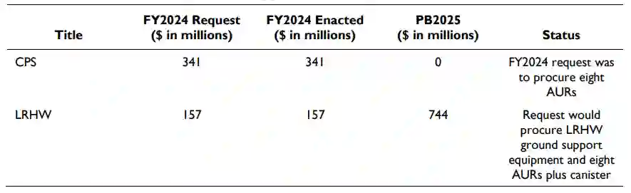 表 2. 美国高超音速武器采购资金汇总表