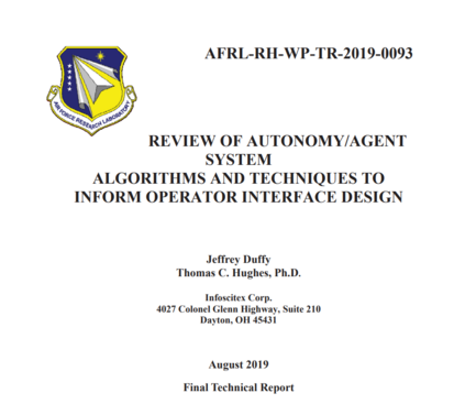 第711人类性能联队的协作交互和团队处发起了一项计划,调查与先进人类自主性互动相关的问题,特别是与现有的人类-自动化协调研究的对比。决策优势行动工具(COATDS)任务的启动是为了调查人机交互的问题,了解自主系统发展的原则,并利用这种理解来指导交互的发展,以支持和加强复杂工作领域的人机协调。