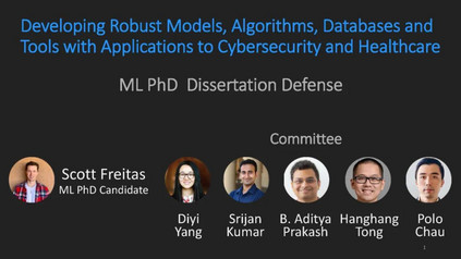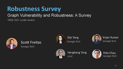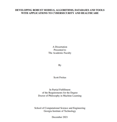 (1)工具:开发了TIGER,第一个全面的图鲁棒性工具箱;鲁棒性调研确定了图鲁棒性研究的关键但缺失的领域。(2)算法:我们的调查和工具箱表明,现有的工作忽略了计算机认证网络的横向攻击。本文开发了D2M,第一个算法框架,通过从图论的角度建模横向攻击移动,来量化和减轻网络对横向攻击的脆弱性。(3)数据库:为了共同防止横向攻击,开发了MALNET-GRAPH,世界上最大的网络安全图数据库,包含696个类别的超过1.2M个图,并首次展示了通过图介质进行恶意软件检测的有效性的大规模结果。通过构建最大的二值图像网络安全数据库扩展MALNET-GRAPH,该数据库包含1.2M图像,比其他唯一的公共数据库多133倍的图像,使少数行业实验室在恶意软件检测和分类研究中的新发现成为可能(MALNET-IMAGE)。(4)模型:为了保护系统免受对抗性攻击,本文开发了UNMASK,这是第一个标记计算机视觉系统中语义不连贯的模型,该模型检测到高达96.75%的攻击,并通过正确分类高达93%的攻击来保护模型。受UNMASK保护计算机视觉系统免受对抗性攻击的能力的启发,本文开发了REST,通过对抗性训练、谱正则化和稀疏正则化的新组合来创建噪声鲁棒模型。在存在噪声的情况下,所提出方法将最先进的睡眠阶段评分提高了71%,使我们能够在早期和家庭环境中诊断睡眠障碍,同时使用的参数减少了19倍,MFLOPS减少了15倍。我们的工作对行业和社会产生了重大影响:UNMASK框架为DARPA数百万美元的GARD奖奠定了基础;用于图鲁棒性分析的TIGER工具箱是Nvidia数据科学教学工具包的一部分,供世界各地的教育工作者使用;我们发布了MALNET,世界上最大的图分类数据库,包含120万张图;D2M框架对微软的产品产生了重大影响,启发了该产品对横向攻击检测方法的改变。 https://smartech.gatech.edu/handle/1853/66145