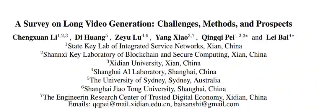 本文提供了长视频生成领域最新研究进展的全面回顾。我们系统地回顾了四种视频生成模型,并深入探讨了基于这些模型生成长视频的范式,将它们归类为两大类型:分而治之和自回归。此外,我们的工作包括了长视频生成质量特性的综合总结。为旨在增强这些质量的现有研究提供了详细解释。还讨论了聚焦于资源需求解决方案的研究。为了进一步推进该领域,我们识别了几个未来发展的有希望方向。 数据资源扩展现有方法面临着在训练长视频生成模型时由于长视频数据集资源不足的挑战,这些数据集未能满足通过训练数据获得最优模型参数的要求。因此,这导致了如长视频生成不连贯和内容重复等问题。为了解决这一问题,Gu等人(2023)提出了一种使用大型语言模型并转换现有视频内容以扩展数据集的方法,有效解决了数据稀缺问题。未来的研究可以探索更有效的方法来丰富长视频数据集。 统一生成方法的开发长视频生成的现有范式被总结为两大类:分而治之和自回归。虽然它们能够利用现有模型生成长视频,但每种方法都有其缺点。具体而言,分而治之受制于长视频训练数据集的稀缺性,需要显著的生成时间,面临在长时间跨度上预测关键帧的挑战,且关键帧的质量显著影响填充帧的质量。自回归倾向于累积错误,并在多次推断后遭受内容退化。总体而言,每种范式都有其优势和弱点。未来的研究可能旨在开发一种高质量的统一范式,整合两种范式的优势以解决它们各自的局限性。 具有灵活长度和宽高比的生成当前的研究主要侧重于训练和创建具有预定尺寸的长视频内容。然而,对多样化视频内容和模拟现实世界的日益增长的需求,要求生成具有可变长度和宽高比的视频。Sora(OpenAI,2024)和FiT(Lu等人,2024)在这一领域取得了进展,Sora实现了灵活视频大小的生成,FiT在图像生成的两个维度上展示了适应性。未来的研究可能会强调改善视频生成的灵活性,旨在提高生成模型在现实世界设置中的适用性,并进一步激发视频内容利用的创新。 超长视频的生成在图1中描述的调查中,现有研究中长视频的最长持续时间为1小时(Skorokhodov等人,2022)。然而,在现实生活中,如电影和驾驶模拟中,视频持续时间通常为90分钟甚至更长。我们将这些称为“超长视频”。因此,未来的研究可以集中于生成超长视频,并解决随着持续时间延长而出现的视角转换、角色和场景发展以及动作和情节丰富化的挑战。 增强的可控性和现实世界模拟在长视频生成中,当前模型在生成过程中和内部操作像黑盒一样,使得理解错误的原因(如违反物理定律的错误,由Sora(OpenAI,2024)展示)变得具有挑战性。现有解决方案缺乏对问题起源的洞察以及直观、可控的补救措施。因此,需要新的方法和技术来增强我们对生成模型的理解和控制,使它们更适合于现实世界的应用。