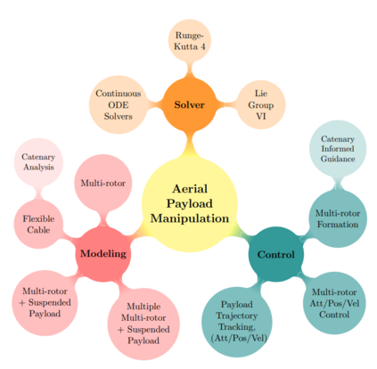 自主系统的最新进展对学术界和工业界都产生了重大影响,开辟了新的研究途径。其中之一就是多个系统为实现共同目标而进行的协作,这就是所谓的合作系统。在缺乏人类智能、决策和感知能力的情况下,无人自主系统在一起部署和使用时,可以从彼此的能力中相互受益。本研究探讨了无人驾驶航空系统(UAS)群的协作问题,在这种情况下,由于单个飞行器受到限制,需要进行不同程度的协调与合作。这种合作的形式可以是物理支持,即任务要求超出单个系统的物理能力;也可以是情报级支持,即总体上需要更好的感知、处理或决策能力。本研究的目标是为一组选定的无人机系统和受限任务场景开发和集成协同制导与控制算法,这些场景包括通过带悬挂缆绳的多旋翼飞行器协同操纵空中有效载荷的任务,以及利用飞艇和多旋翼飞行器团队协同编队的任务。此外,本研究还旨在将所开发的个体和合作模型算法集成到高保真模拟中,以便在现实飞行任务中研究多智能体协作的有效性。