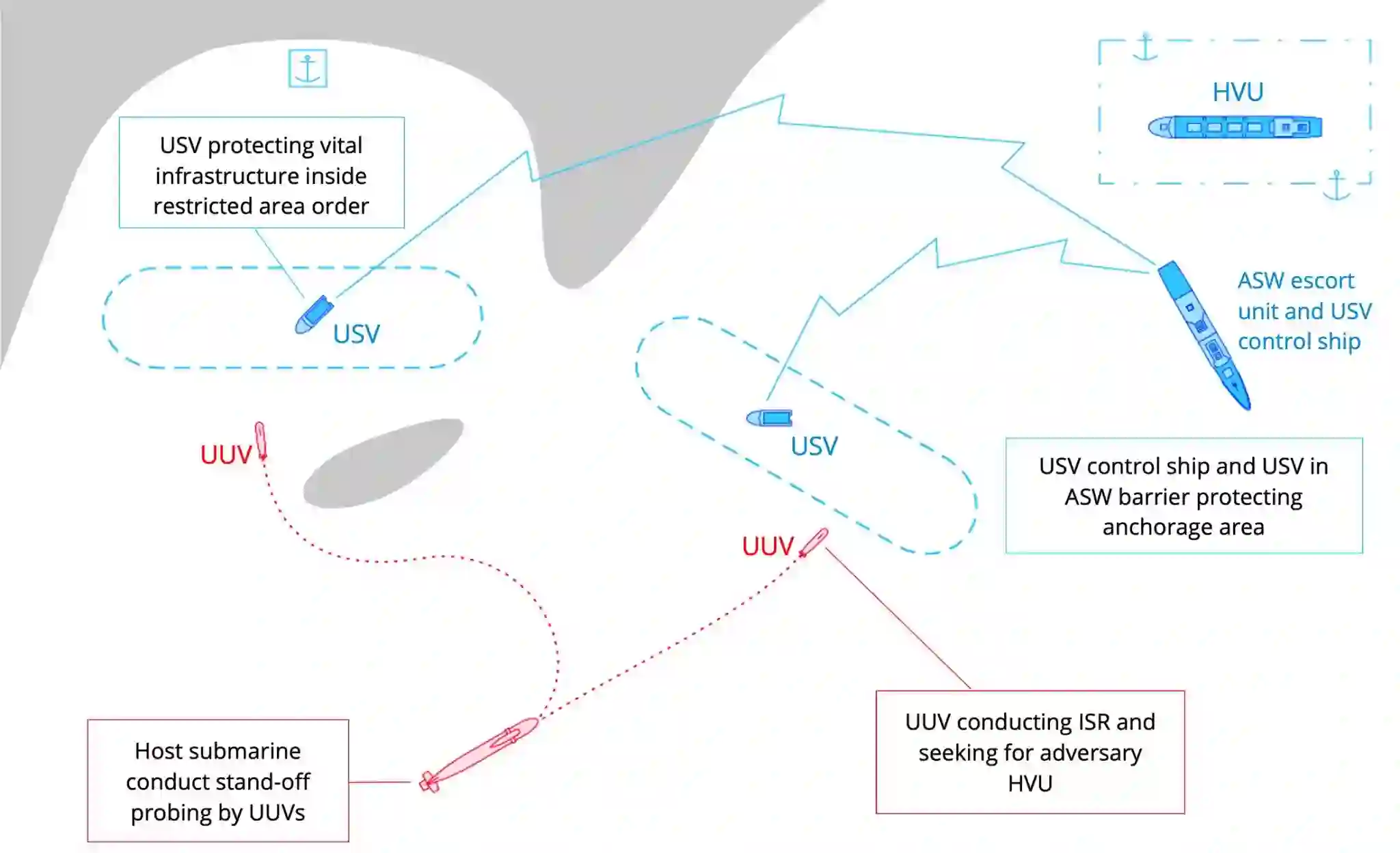 消除威胁的难度仅次于发现威胁的难度。威胁至少可以部分地通过机动来消除,但这只有在良好的态势感知和有效的战术图景下才能实现。与 UUV 相比,大多数水面资产在速度方面都有很大优势,但在许多潜在的战争场景中,仅靠机动是不够的,尤其是在保护海底基础设施等静止物体时。