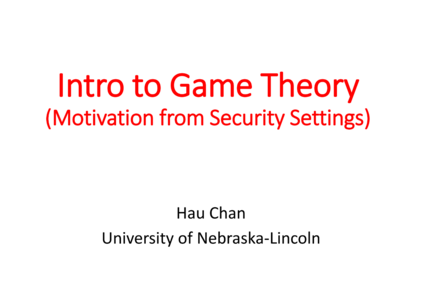 作者介绍: Hau Chan,林肯大学计算机科学与工程系助理教授,电子邮件:hchan3@unl.edu。 Chan博士曾在多代理系统和经济的交叉领域工作。他早期的工作重点是应用图形游戏来建模和研究相互依赖的安全域(例如,安全投资决策)。他最近正在进行的工作是关于一款具有复杂策略空间的游戏。 他在AAMAS 2019上提供了有关计算游戏理论主题的教程。