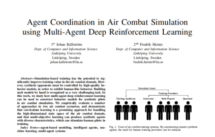 在这项工作中,我们研究了如何在空战模拟中使用多智能体深度强化学习来学习协调。在空战领域,多个智能体的协调是很重要的,因为飞行员从来不会单独飞行。我们的贡献可以总结为以下几点: