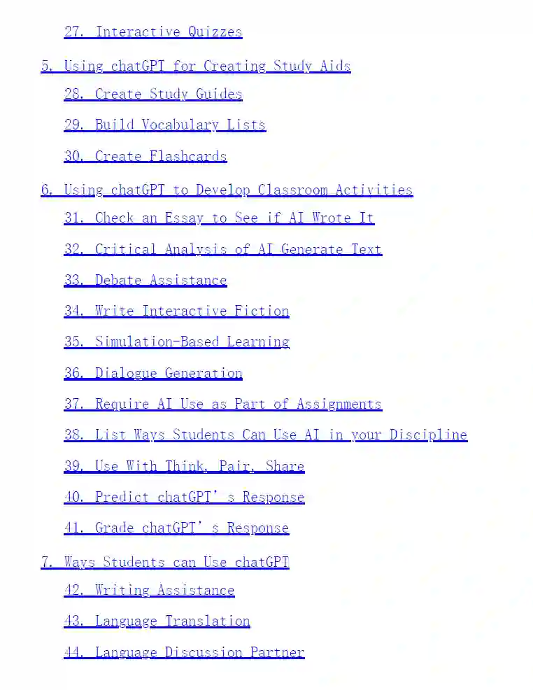 ChatGPT对你的课堂有什么影响?你应该担心吗?你是否应该使用它? 在《80 Ways to Use ChatGPT In the Classroom: Using AI to Enhance Teaching and Learning》一书中,教学技术专家和设计师Stan Skrabut博士探讨了这些主题以及更多内容。他介绍了将chatGPT纳入课堂的不同方法,包括备课、提供教学辅助、创建评估、开发学习辅助工具,以及使用chatGPT进行计算机编程。本书还介绍了学生如何使用chatGPT进行写作辅助、研究和个性化学习。 Stan提供了实际的例子和建议,以帮助教育者充分利用chatGPT的能力,同时解决潜在的问题和批评。这本书旨在表明人工智能可以增强教学,并鼓励教育工作者在课堂上使用这种技术。看看这是怎么回事!