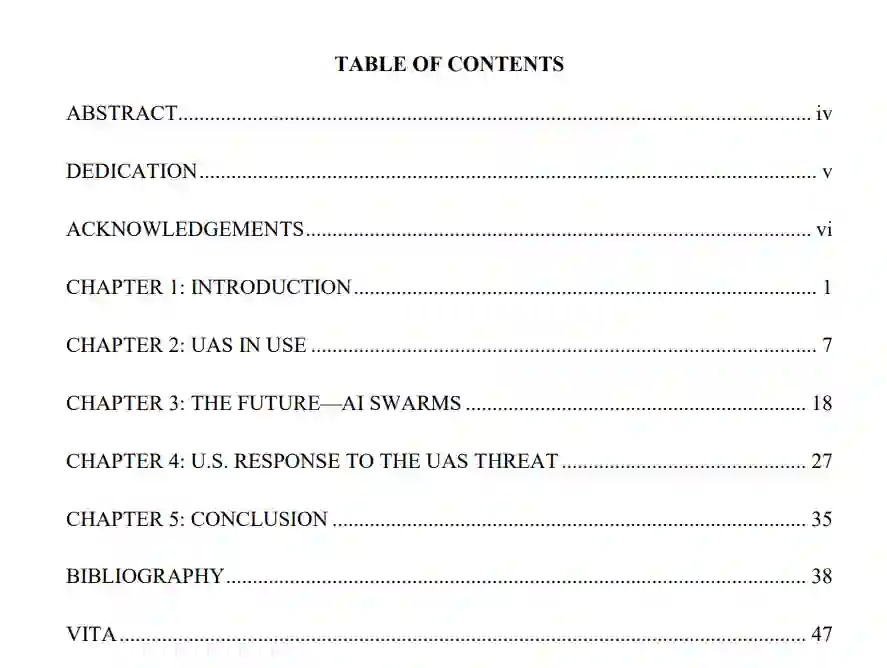 在论证这些观点时,本论文将采用差距和风险分析方法。第二章的差距分析将侧重于过去五年中无人机系统和SHORAD战争的真实案例,包括乌克兰冲突、叙利亚战争、对沙特ARAMCO设施的打击,以及亚美尼亚-阿塞拜疆冲突。本节将分析军队如何应对各种类型的无人机系统的威胁,并分析在条令、训练和物资方面的成功和失败。第三章将把这些现有和新出现的无人机系统威胁与当前和未来的联合部队SHORAD能力进行比较。第四章将分析无人机系统的发展与人工智能的结合,以创建自主的蜂群,以及这些蜂群如何改变战争的特征。考虑到目前可能存在的任何差距,结合人工智能和蜂群战术的影响。第五章将提出建议,以发展条令、训练和物资等方面,使联合部队为击败这些威胁做好准备。