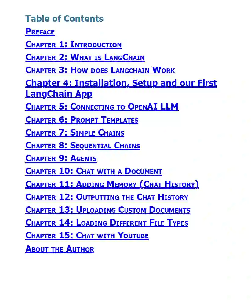 在这个简短的课程中,我们将带领你进行一次有趣、实用的学习之旅,学习如何使用LangChain构建基于大型语言模型(LLM)的应用程序。你将在几分钟内开始构建你的第一个生成式人工智能应用。每个章节都以简洁的方式录制,直击要点,因为我不想浪费你的时间(当然也包括我的)在你不需要的内容上。在这个课程中,我们将涵盖:什么是LangChainLangChain是如何工作的安装、设置及我们的第一个LangChain应用构建一个中等文章生成器应用连接到OpenAI LLM提示模板简单链顺序链代理与文档对话添加记忆(聊天历史)输出聊天历史上传自定义文档加载不同类型的文档(例如PDF、txt、文档)与YouTube等对话...这个课程的目标是以一种可管理的方式教你LangChain开发,不会让你感到不知所措。我们只关注必要的内容,并以实际操作的方式覆盖材料,以便你能跟着代码学习。通过这个课程的学习这个课程故意分解成短小的章节,每个章节的开发过程都将围绕不同的基本主题。课程采用实际动手的方法通过实践学习。当你跟着示例编写代码时,你会学得最好。