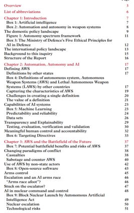 保持公众信心: 对英国防部 "目前没有开展监测或民意调查以了解公众对使用自主武器系统的态度 "这一事实感到失望。政府必须确保在开发自动武器系统时适当征求公众意见。它还必须确保道德规范处于其政策的中心位置,包括扩大英国防部人工智能道德咨询委员会的作用。