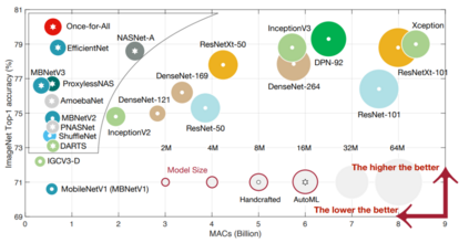 上述模型压缩策略和高效的神经网络架构的成功依赖于手工制作的启发式,这需要领域专家探索较大的设计空间,在模型大小、延迟、能量和准确性之间进行权衡。这是耗时且次优的。在本节中,我们将描述处理此挑战的自动化方法。